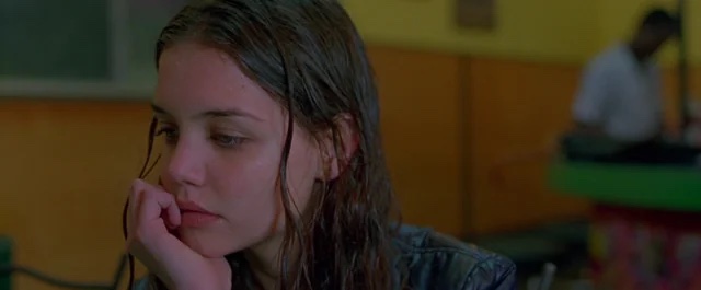 Okay, I digress. In one of the best, most suspenseful scenes of the movie, Claire (Katie Holmes) serves as human collateral. They have an awkward exchange and Katie Holmes perfectly encapsulates that feeling of trying to stay cool while you are really shitting bricks on the inside. Massive Attack’s Angel plays in the background but takes center stage as Todd blasts the volume as he checks Ronna, upon her return, for a wire. It’s a simultaneously obnoxious, dangerous, sensual scene.